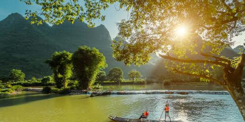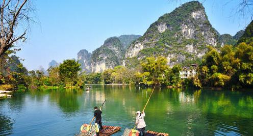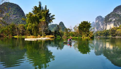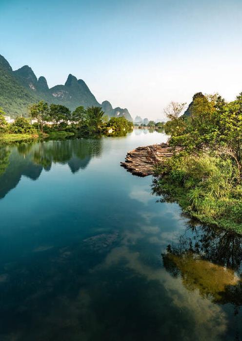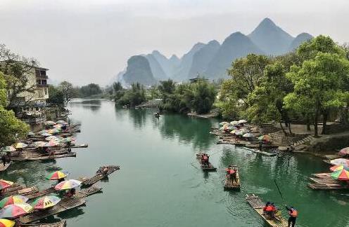 抵达阳朔后,首站可领受遇龙河景区。乘坐竹筏顺流而下,两岸青山如黛,荒野风景尽收眼底,水面反照着蓝天白云,令东谈主心旷神怡。傍晚散步河滨,微风拂面,水波浪荡,感受遇龙河的静谧与奥密。