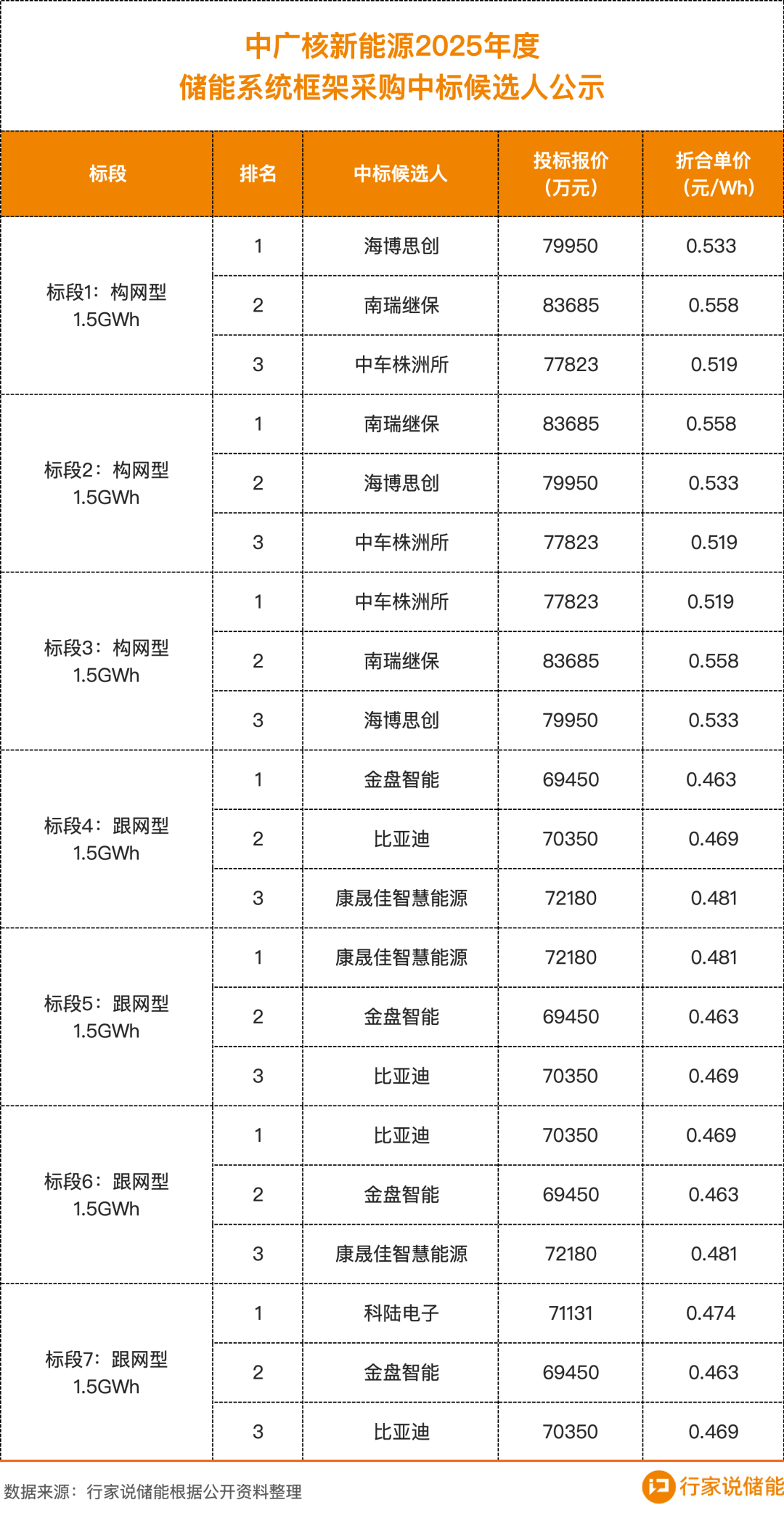 1月14日,中广核新动力2025年度储能系统框架采购中标候选东说念主公示。