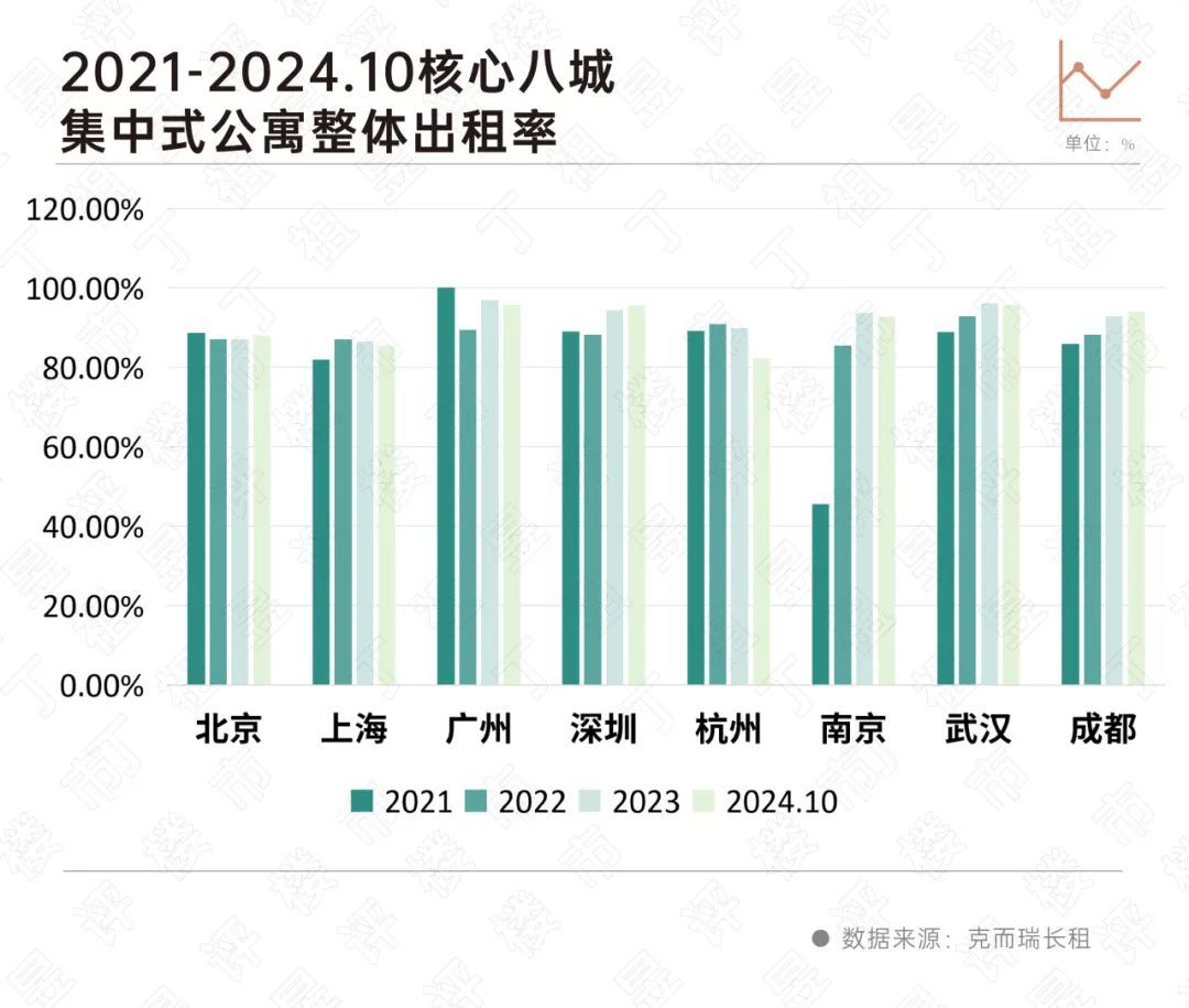 此外,从出租率进展来看,受多量保租房加码入市影响,供应完全量较大的城市,如上海、杭州聚拢式公寓出租率呈现下滑态势。