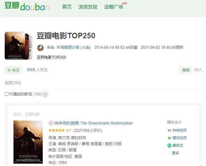 昔时,证实斯蒂芬·金演义改编的电影《肖申克的救赎》更是一直名次豆瓣天下电影名次TOP250之第又名。