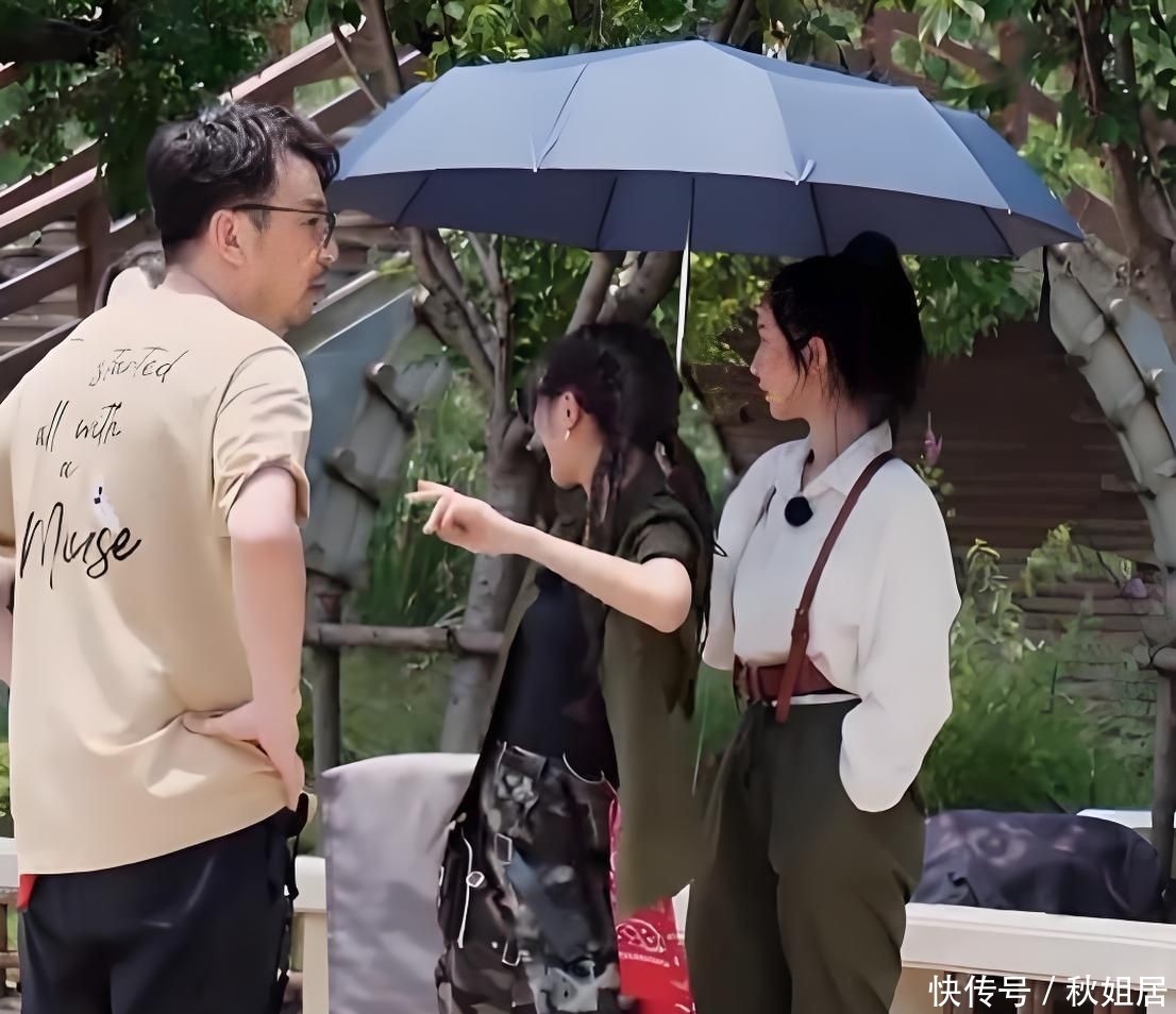 虞书欣等东说念主在阳光下崇拜拍摄时,她却躲在阴冷处打着伞休息。
