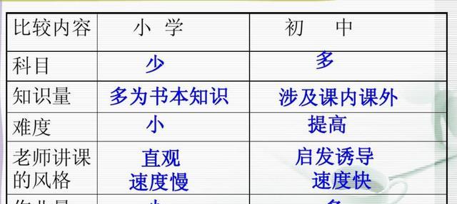 此外,这些科主张学习,岂论是从实验上,如故从学习姿色上都与小学不同。小学的学习姿色相对毛糙,主要以记念锻练为主;而初中则愈加强调念念考和理解,需要学生具备一定的念念维和自主学习才智。