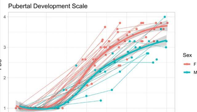 凭据下图“芳华期发育量表”,咱们可以看出,14岁的初二孩子,岂论是男孩如故女孩,其生理以及情绪的发展都处于持续高涨,快要达到顶峰的芳华期中期阶段。