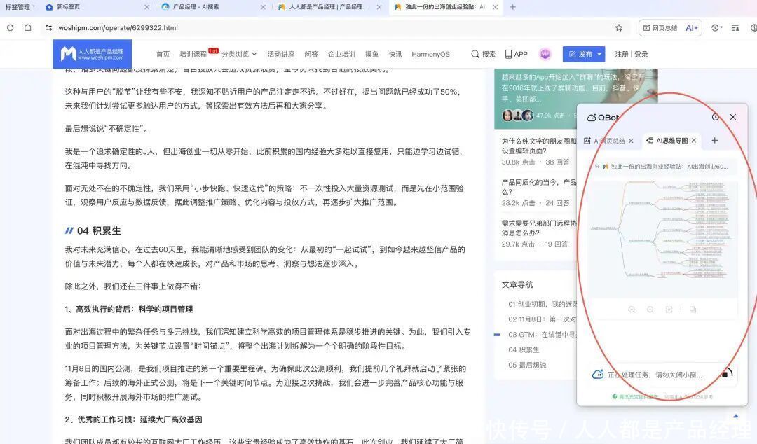 在浏览具体网页的时候,QQ浏览器暂时如故手脚“浏览器”的模样存在,他可能不太想“惊扰”或者改变用户习气,他的AI功能一起被集成到了一个轻量级的悬浮小窗上;