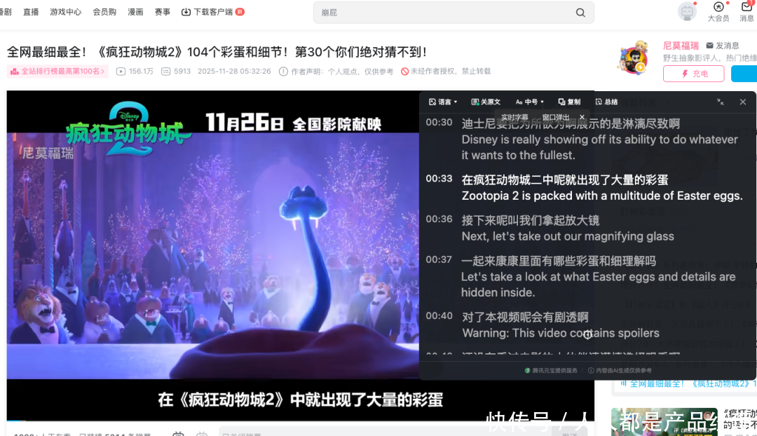 若是说视频总结处治了“看什么”,那么及时字幕功能则处治了“如何看”的问题。