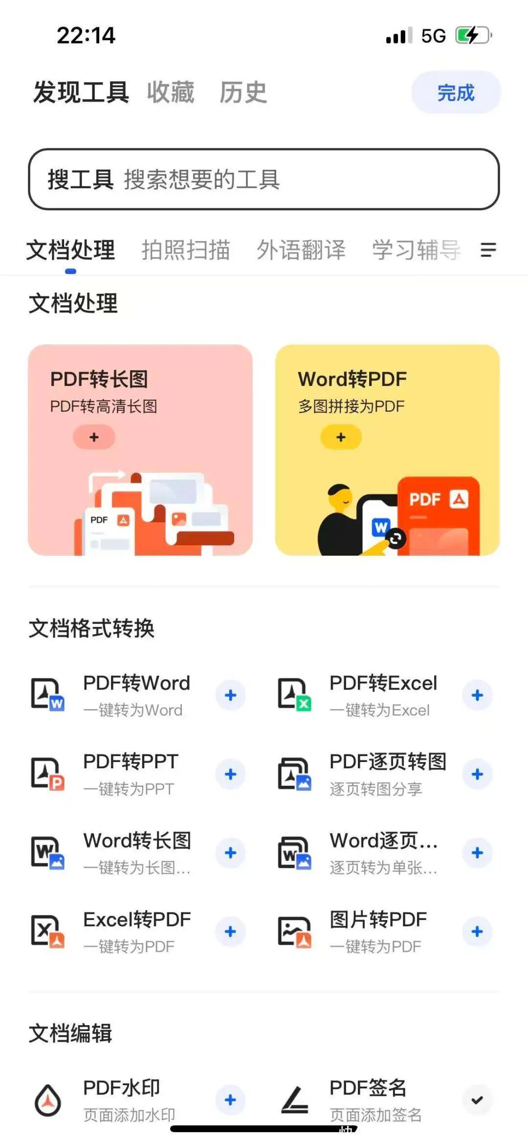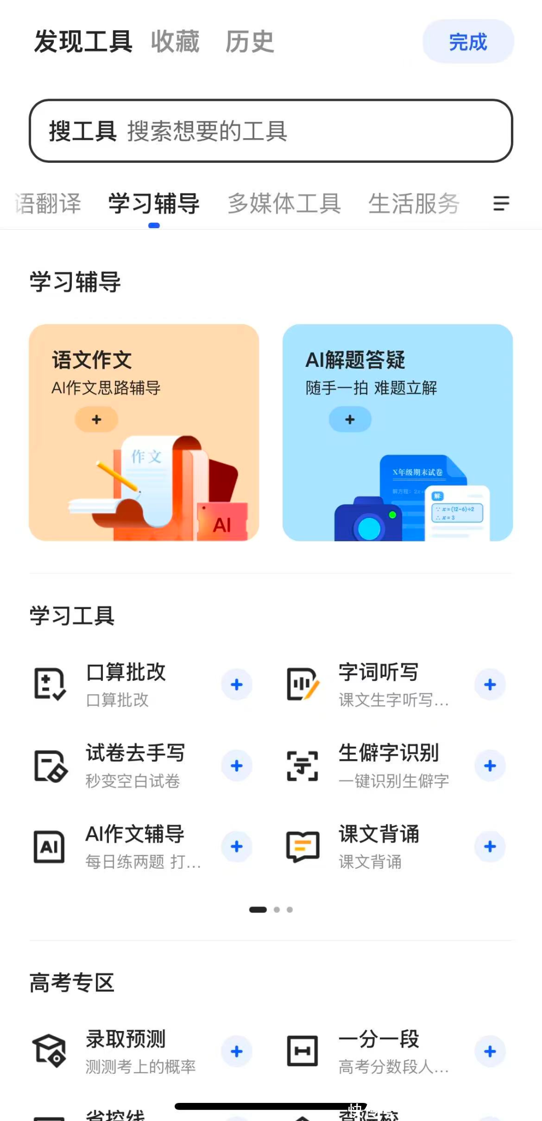 点击“添加”按钮不错增多更多器具,主要聚焦在抠门具、学习两大畛域,包括文档处理、拍照扫描、外语翻译、学习带领、多媒体器具、生涯服务等,不管是搜索如故器具的使用皆是垂手而得,粗陋径直: