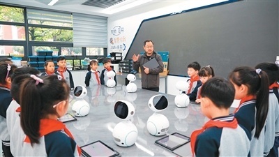 在浙江省金华市金东区实验小学的AI创客教室里,敦厚通过东说念主工智能训导机器东说念主开展东说念主工智能名堂课程教学。 陈真金不怕火钢摄(东说念主民视觉)