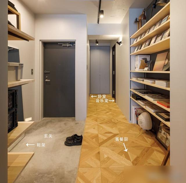 要说谋划亮点,最戳我神经的是她把玄关搞成“文艺把柄地”。进门不搞传统鞋柜,整面唱片墙径直亮盲眼,既措置了收纳还自带灵魂BGM。卫生间干湿三分裂的谋划更是东说念主间澄澈,若干东说念主家里洗浴水漫金山?马桶间、洗漱区、淋浴房各归诸君,这才叫对我方生存的基本尊重。